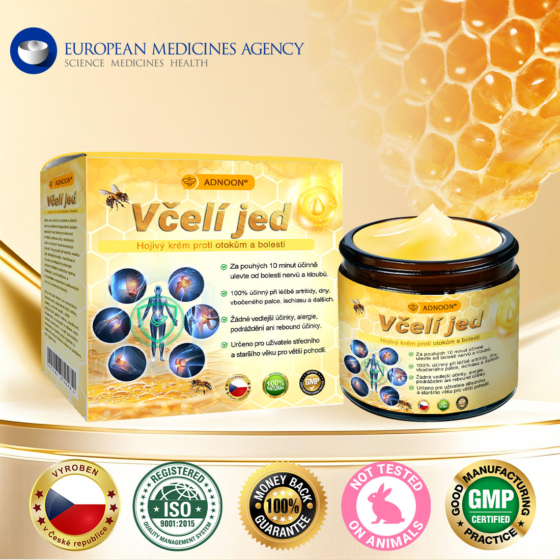 Pak náš ADNOON®Včelí jed pokročilý krém na hojení kloubů a kostí je ideální pro vás! Ve spolupráci s předními odborníky v oblasti přírodní medicíny a apiterapie jsme vyvinuli revoluční krém, který využívá léčivou sílu přírodního včelího jedu k boji proti široké škále zdravotních problémů. ADNOON®Včelí jed pokročilý krém na hojení kloubů a kostí je váš klíč k bezbolestnému a zdravějšímu životu, který vám umožní plně si užívat každý den.
